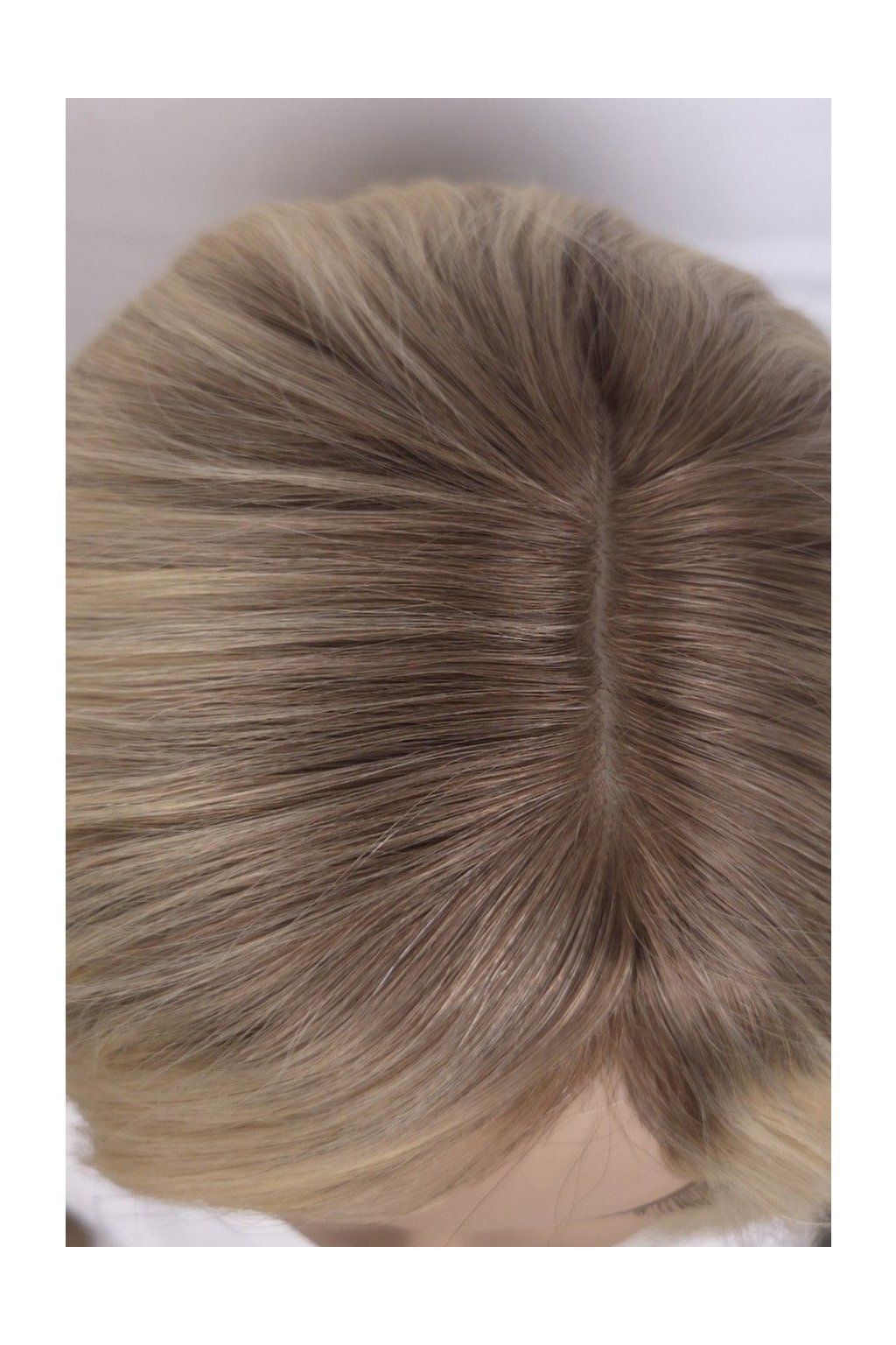 Dámské tupé z pravých vlasů ve světlém blond odstínu s hnědými kořínky a délce 30-35 cm představuje přirozené řešení pro ženy, které chtějí dodat vlasům objem, hustotu nebo jemně zakrýt řídnoucí místa. Díky použití pravých vlasů působí účes velmi realisticky a snadno se přizpůsobí vašemu stylu.